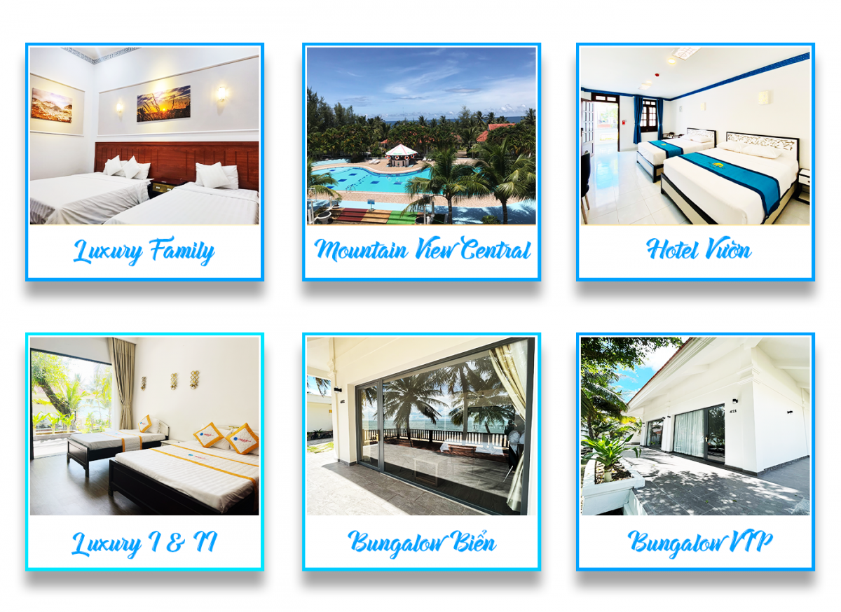 - Bungalow Biển: Phòng nghỉ sát biển, mang lại tầm nhìn tuyệt đẹp và không gian riêng tư.